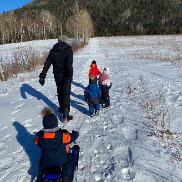 « Ici, le paysage change à chaque saison. L’hiver, on est dans la motricité globale, parce qu’on va grimper ou marcher dans la neige. L’été, c’est plus de la motricité fine qu’on travaille. Les enfants ramassent des petits fruits ou jouent dans le sable. La Gaspésie nous offre un terrain de jeu incroyable, parce que la nature est partout. »
